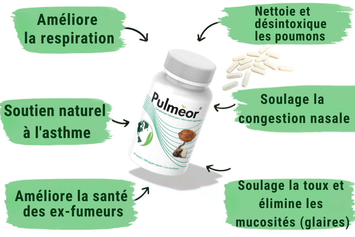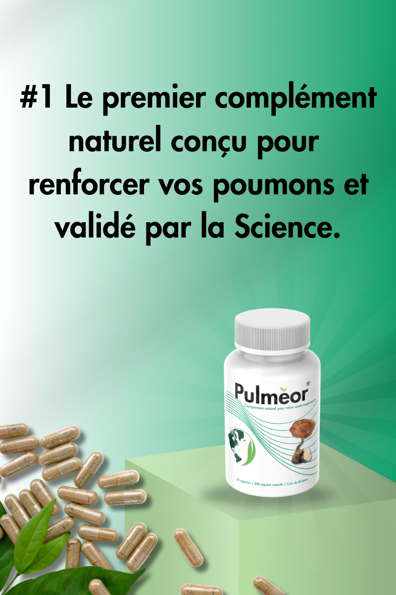 Pulmeor, notre formule 100 % naturelle et bio, booste votre respiration et soulage rapidement les symptômes liés à l’asthme, la sinusite, la bronchite et la toux.